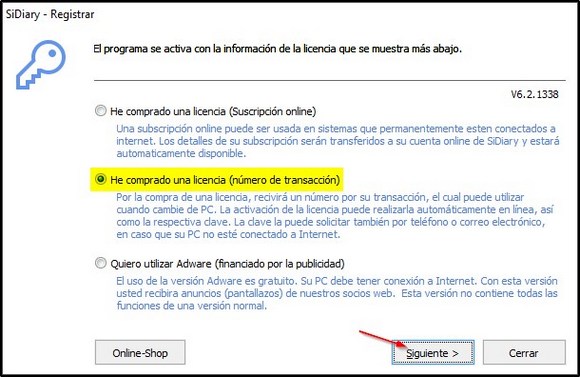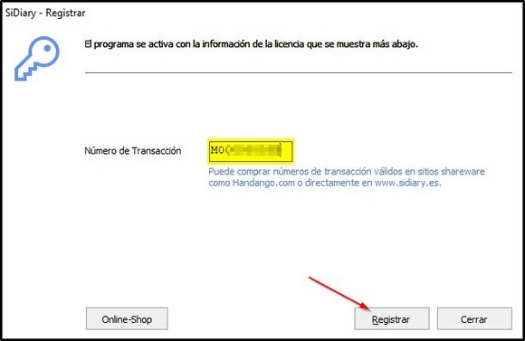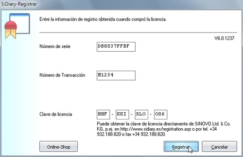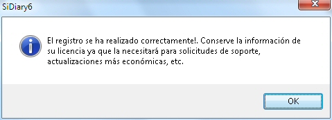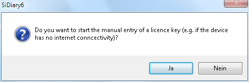 Entonces SiDiary te preguntará si deseas ingresar manualmente la Clave de la licencia. Haz click en 'Sí':