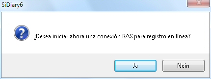 Aún en este caso, SiDiary primero tratará de establecer una conexión a Internet y después de unos cuantos segundos muestra el mensaje siguiente, en el cual puedes hacer click en 'No':