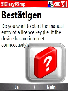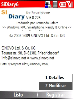 Tip: Si has conectado tu dispositivo móvil con Microsoft ActiveSync (resp. Mobile Device Center) a tu PC, puedes usar la conexión a Internet de la PC para registrarte. Solo hazlo sin interrumpir la conexión de tu dispositivo móvil a la PC.Abre el diálogo Acerca de (Menú -> Navegación -> Acerca de), luego 'Registro -> Editar':