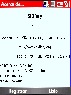 Aún en este caso, SiDiary primero tratará de establecer una conexión a Internet y después de unos cuantos segundos muestra el mensaje siguiente, en el cual puedes hacer click en 'Aceptar':