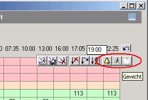 You can open this toolbar by clicking a column header of the overview grid. You will see several icon buttons including (at the right side) a button for reminders, exercises and for the daily weight.