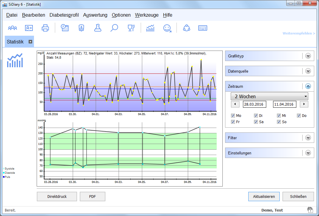 SiDiary kann hierbei unterstützend helfen, indem nicht einfach nur die aktuellen Daten erfasst, sondern auch ausgewertet werden. Hilfreich dabei ist die Trend-Funktion.