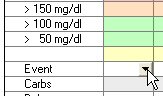 Please enter an abbreviation for your new event in the field Key. In the detail-logbook you can select your events right to the field "Event" by clicking on the downwards arrow (see screenshot).