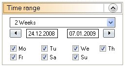 You can select a time range from the list box or enter the start and end date manually. If you do not want to enter the dates manual you are also able to double click in the date input box and select the exact date with the calendar control element.