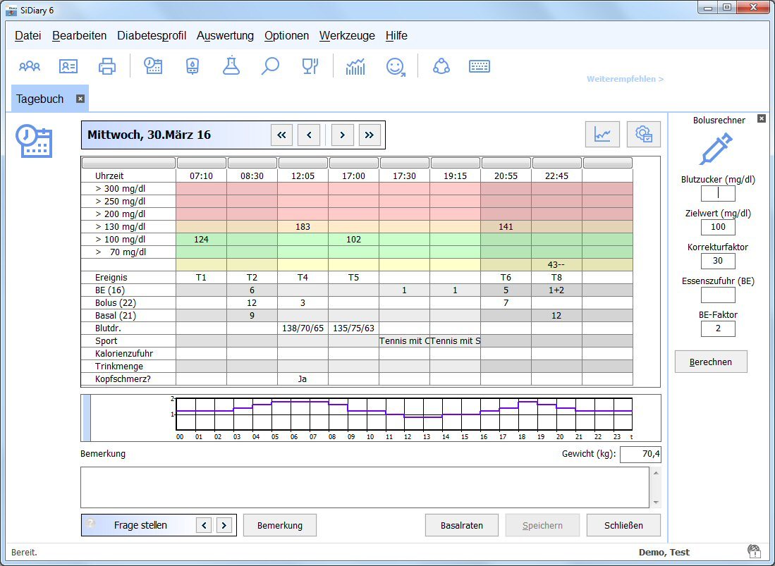 Schnelleinstieg ins Diabetiker-Tagebuch SiDiary