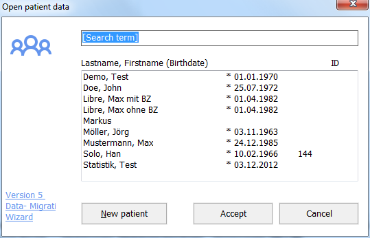 By the way: When you read a meter, SiDiary reads also the serial number of the device. If the serial number is once known in the system, the program will automatically detect which patient is assigned to the serial number.